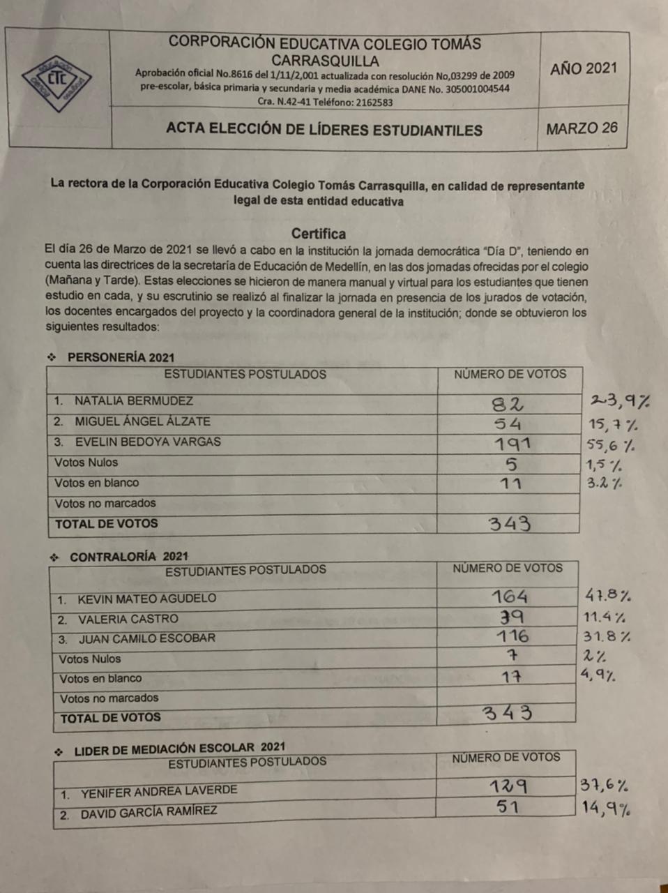 RESULTADOS DE LA VOTACIÓN