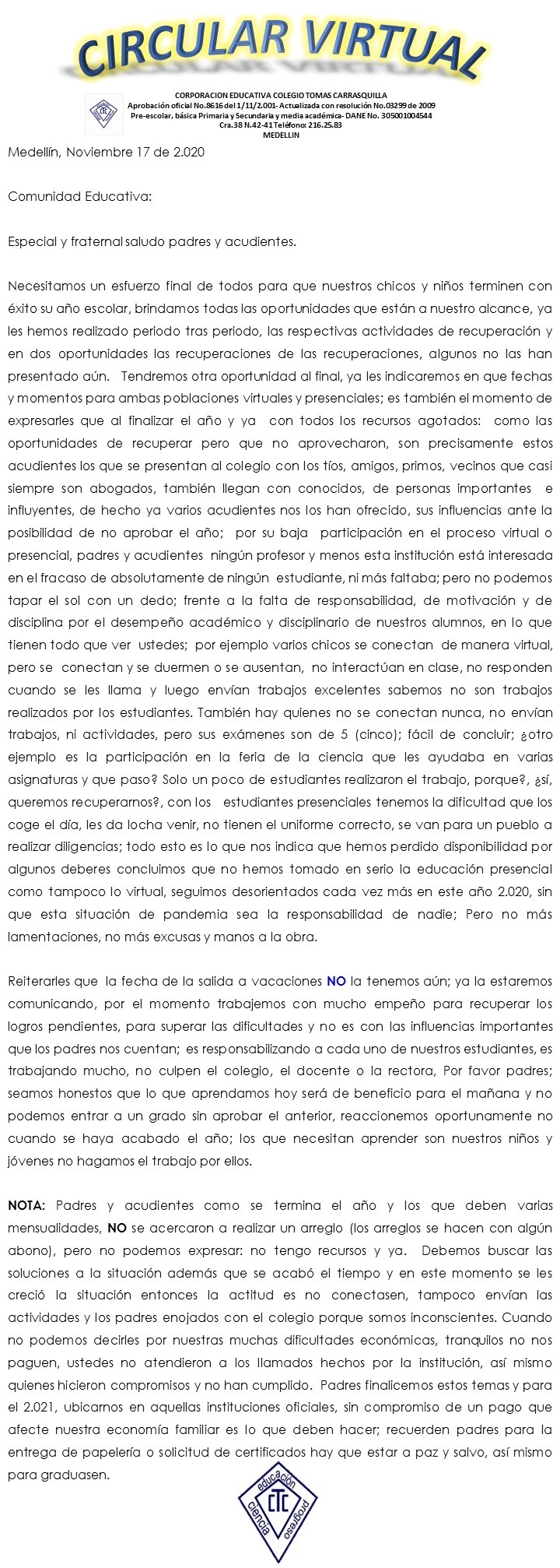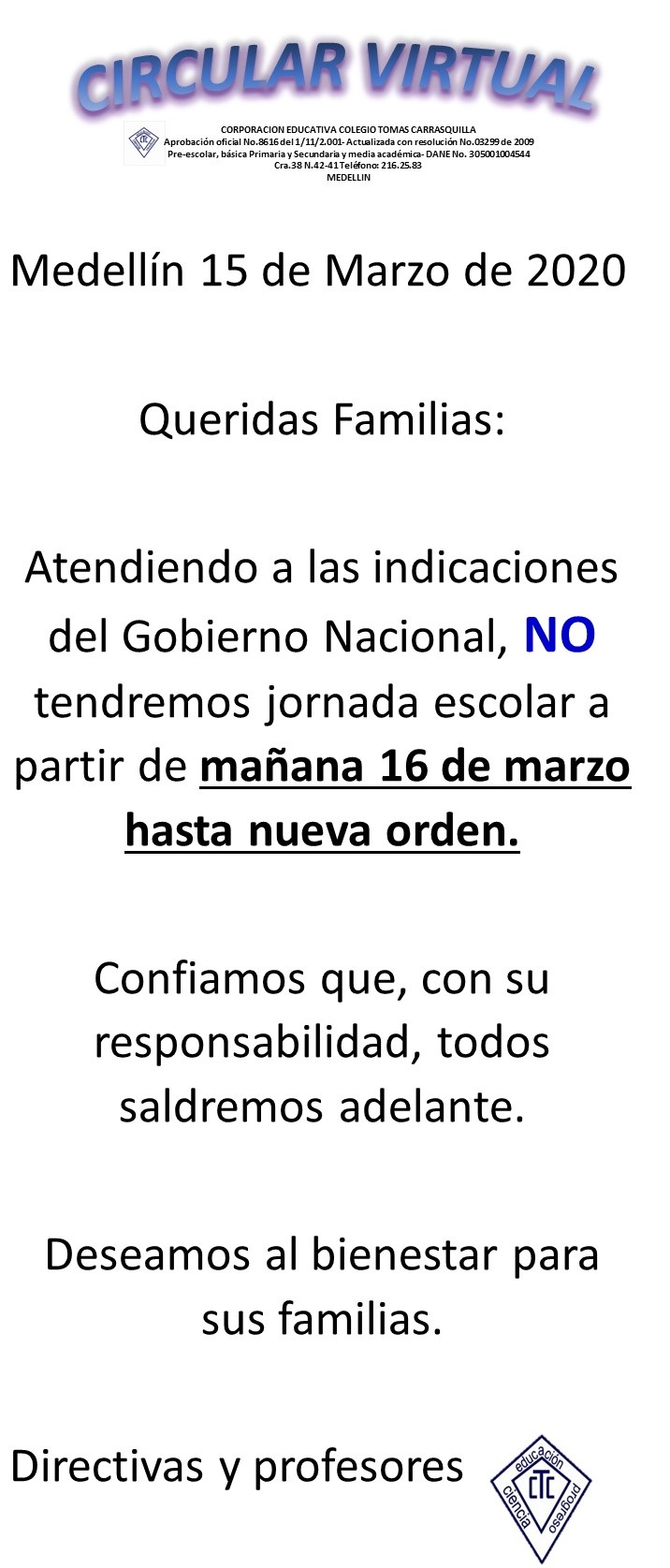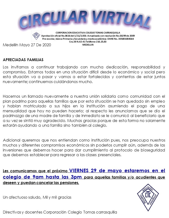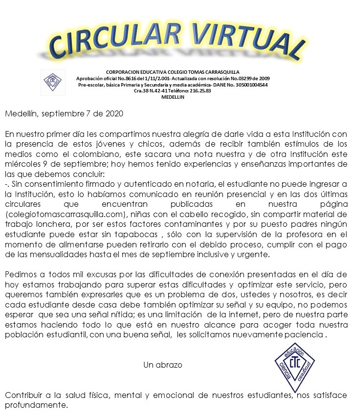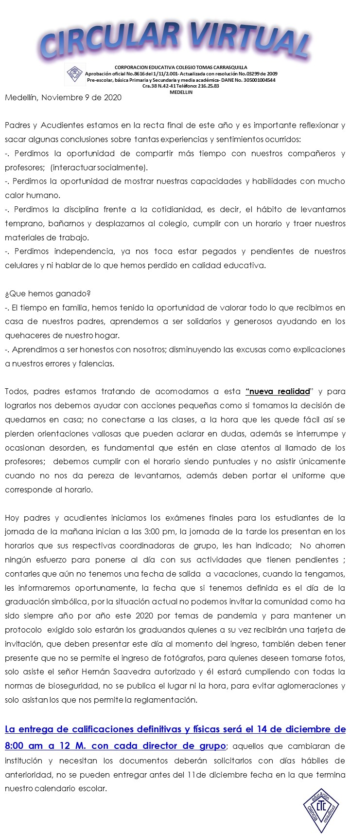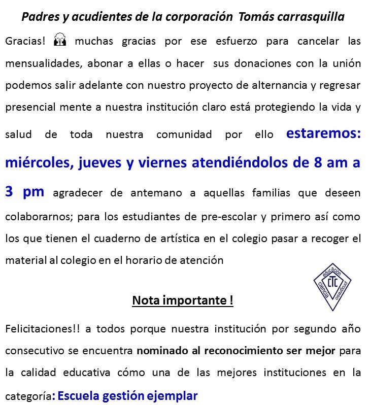Boletín informativo #3 Colegio Tomás Carrasquilla