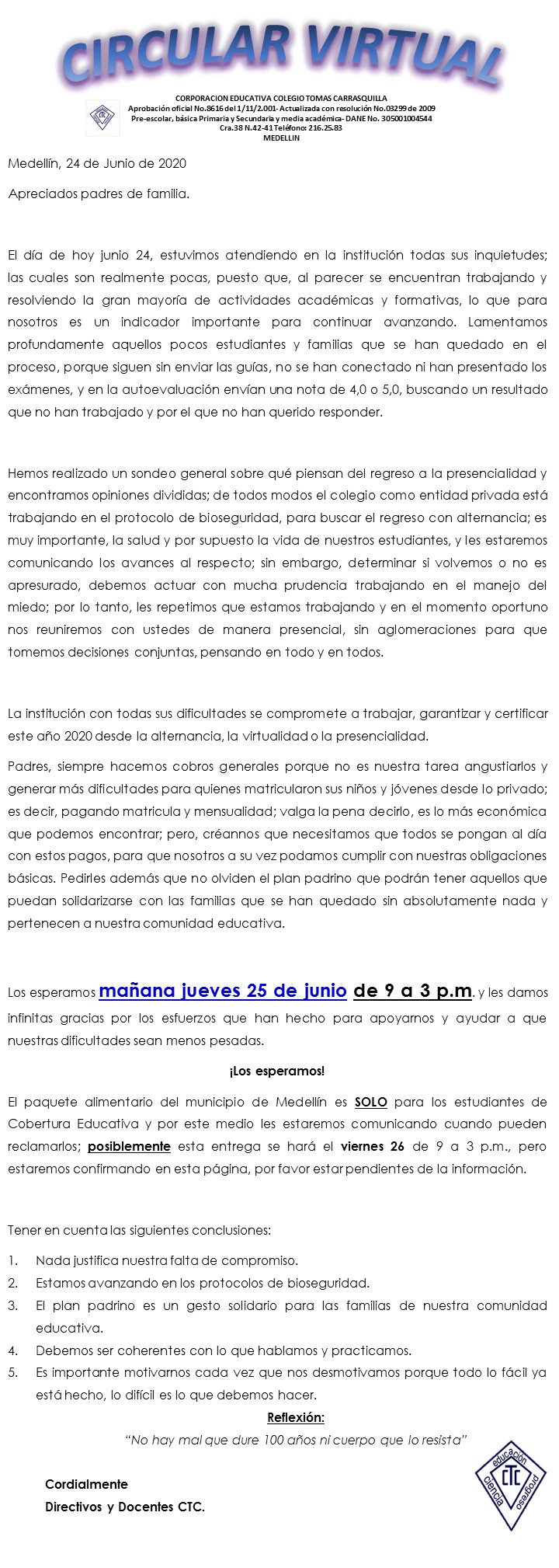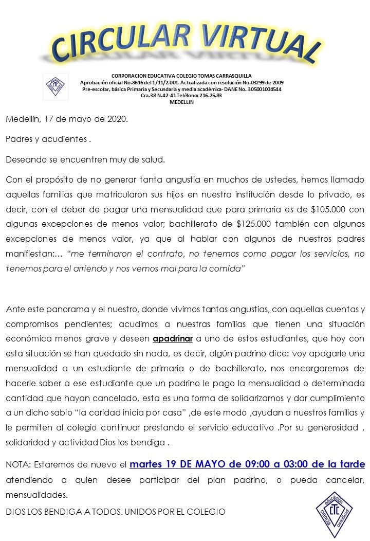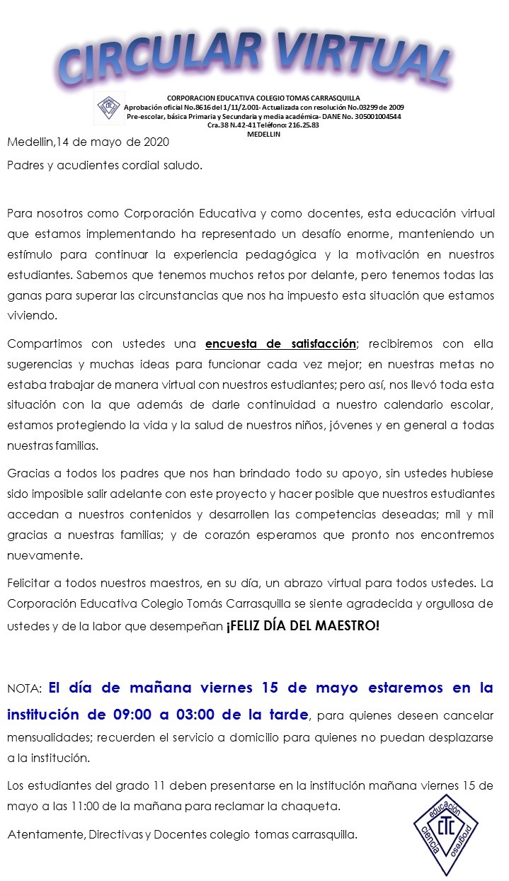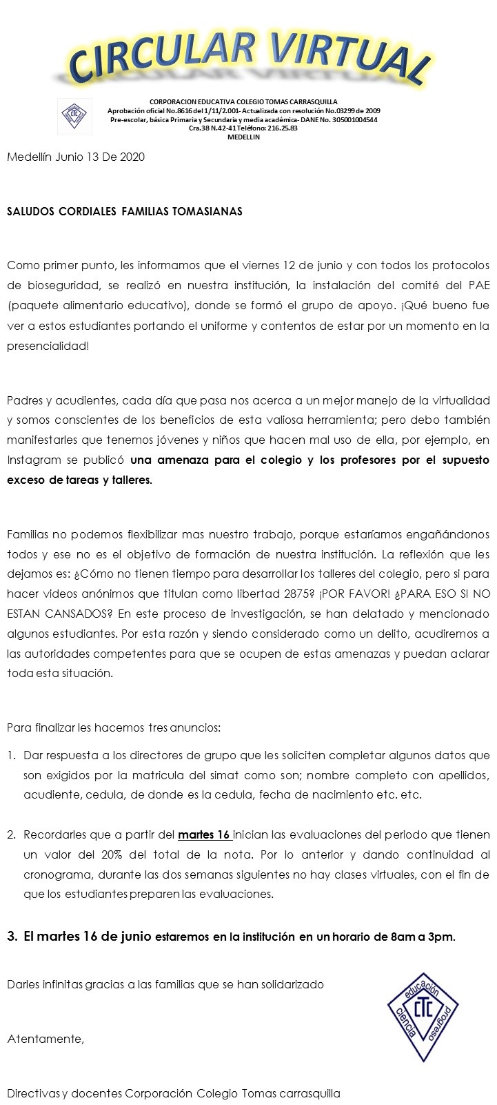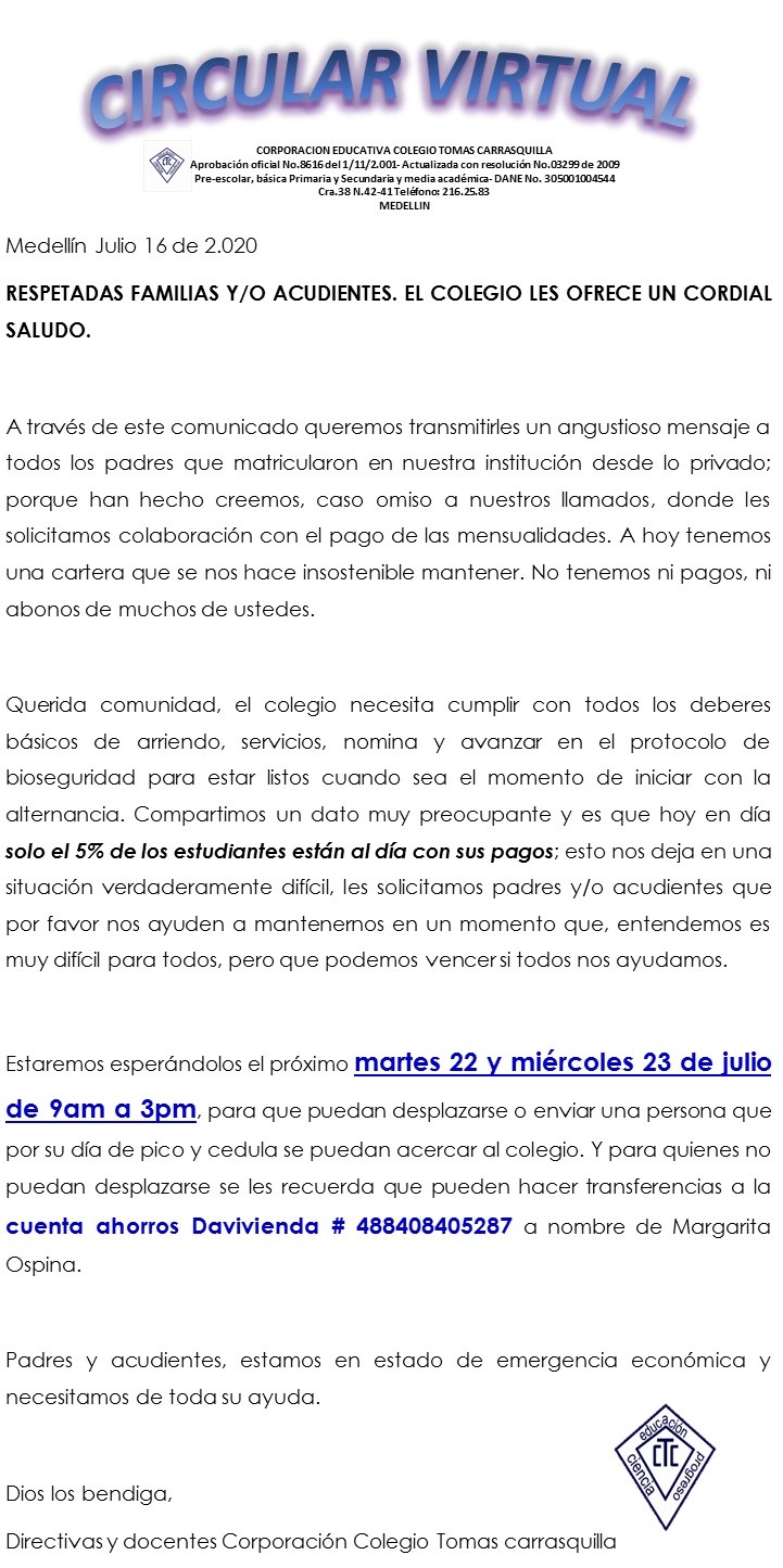 Boletín informativo #3 Colegio Tomás Carrasquilla