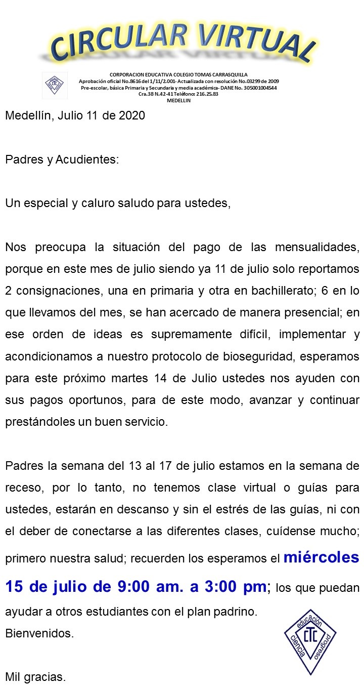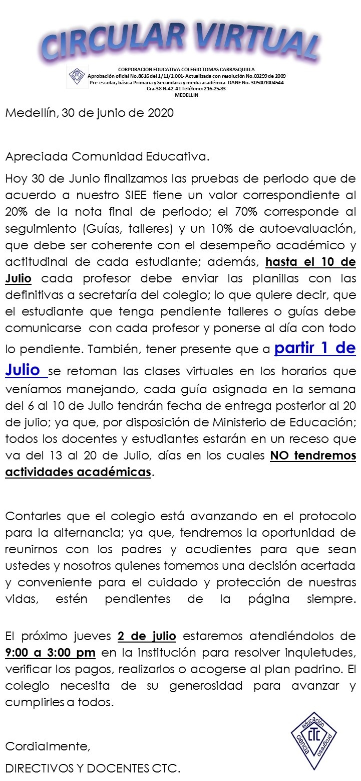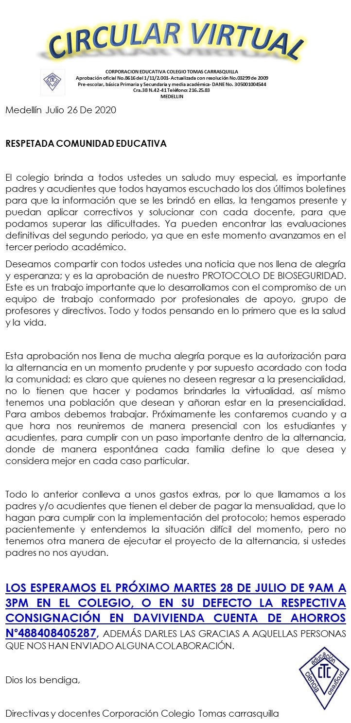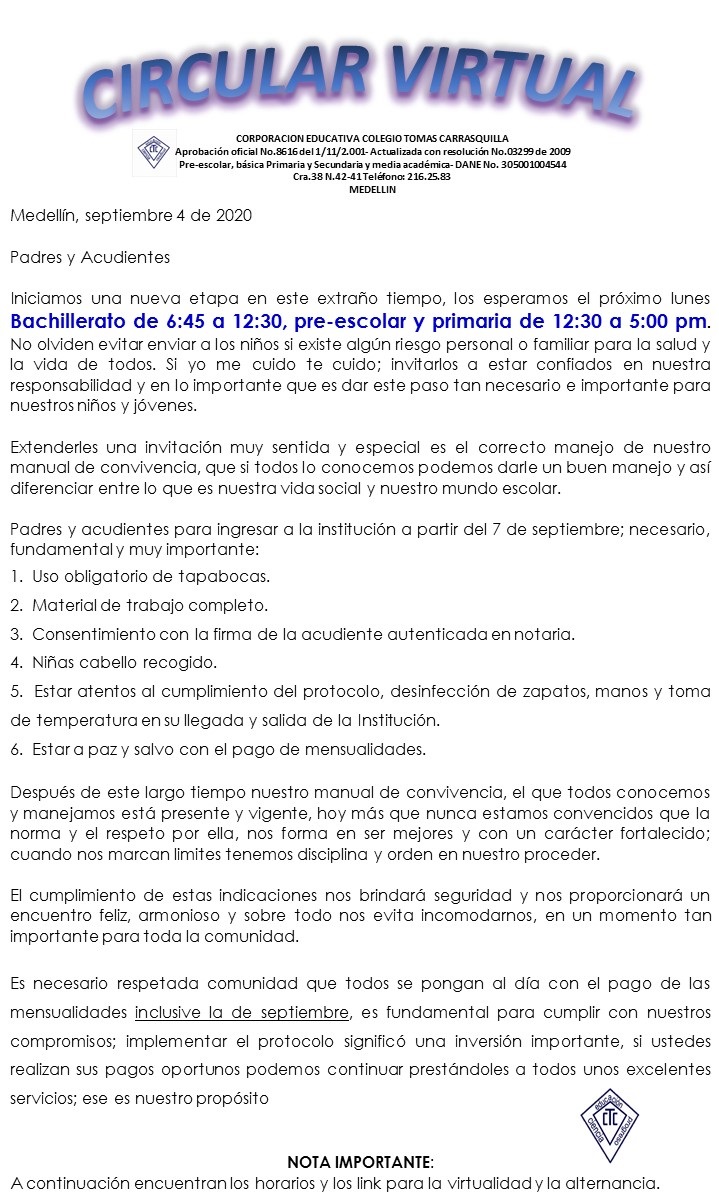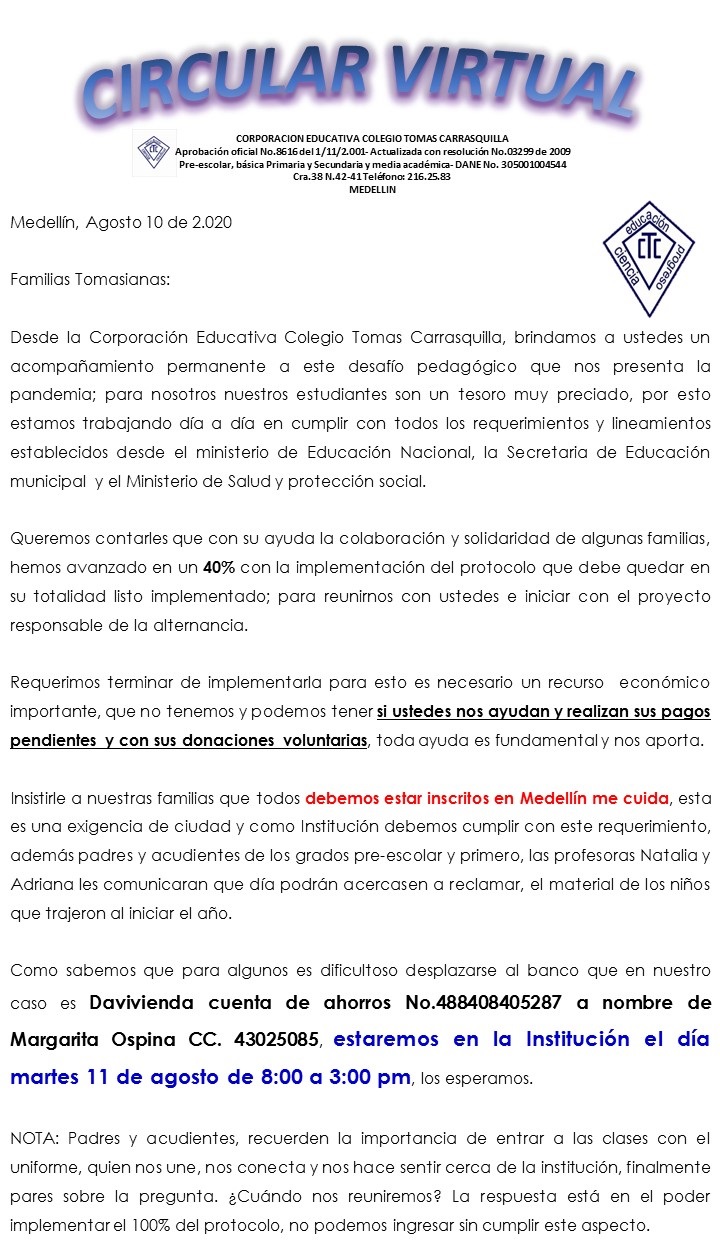 Boletín informativo #3 Colegio Tomás Carrasquilla