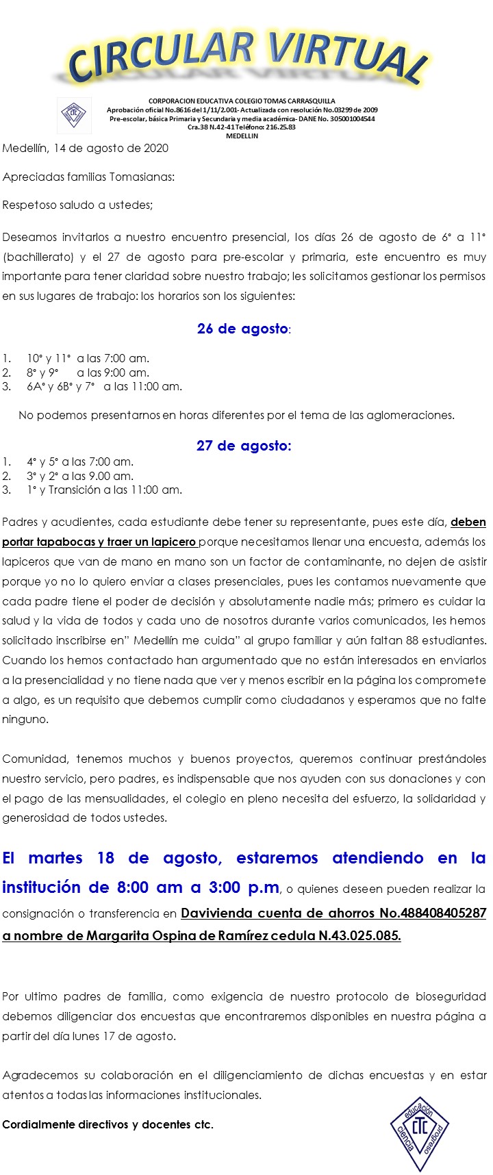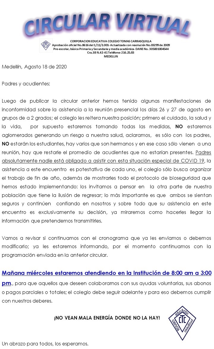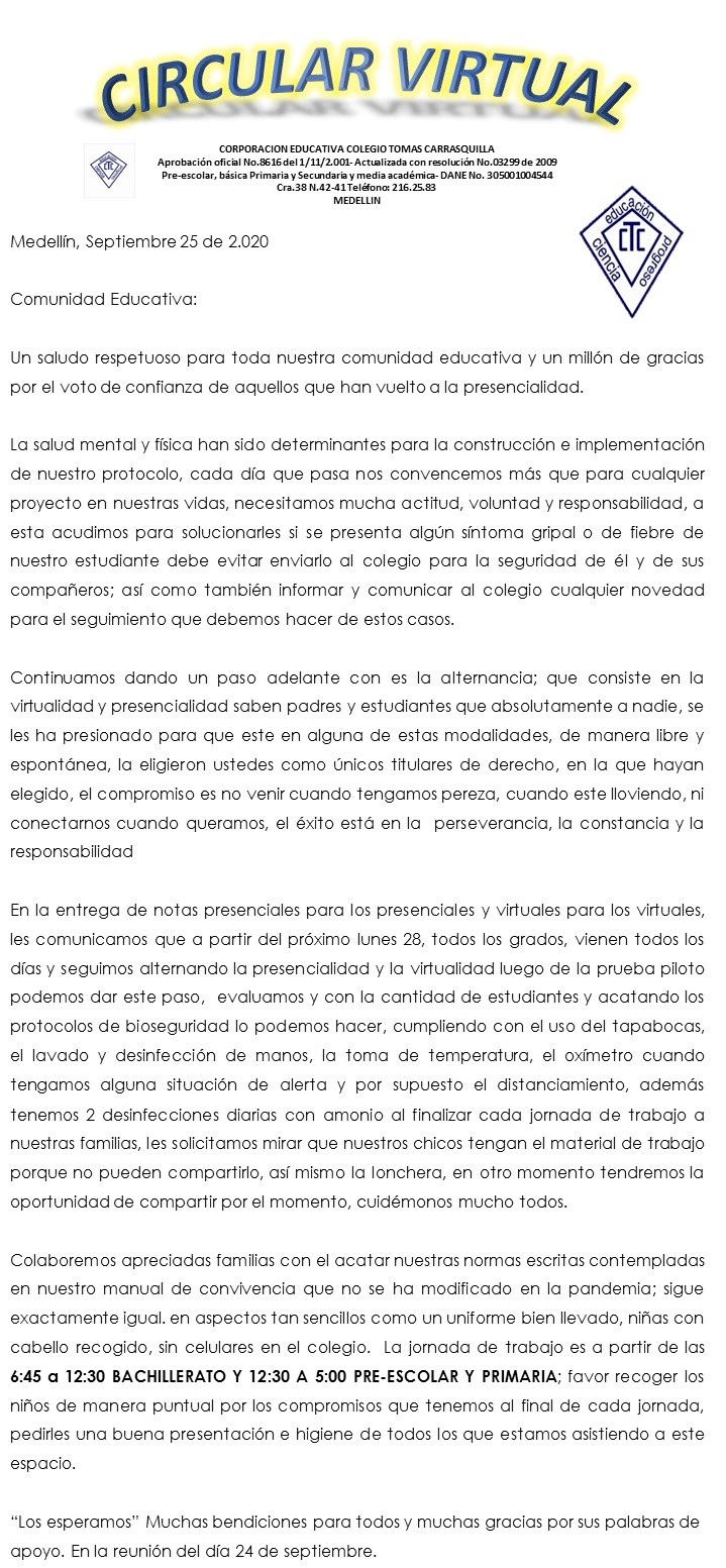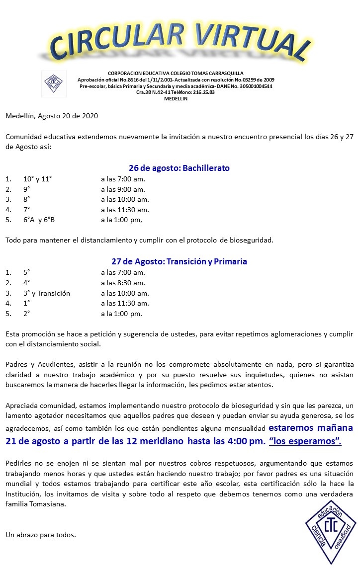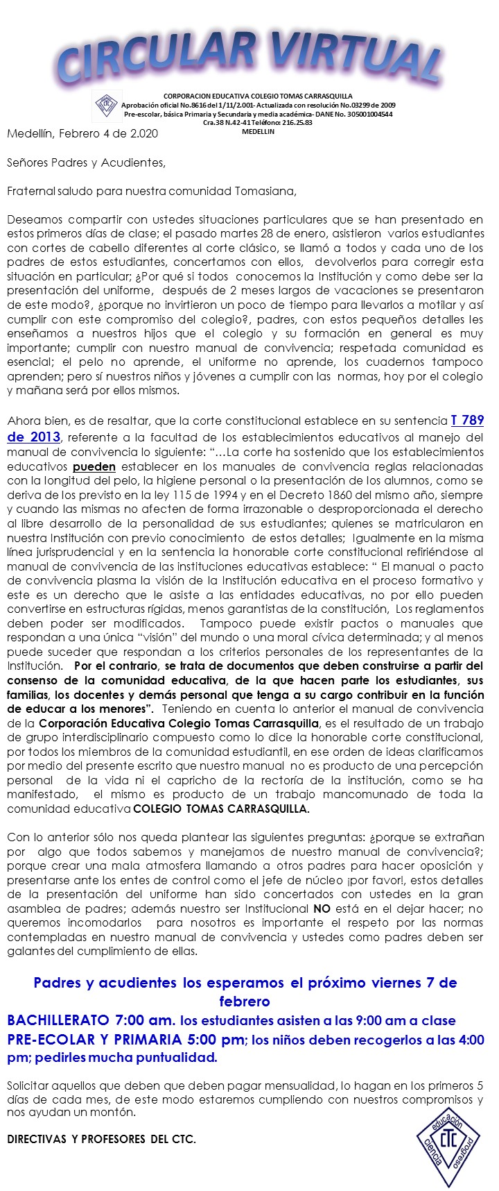 Boletín informativo #3 Colegio Tomás Carrasquilla