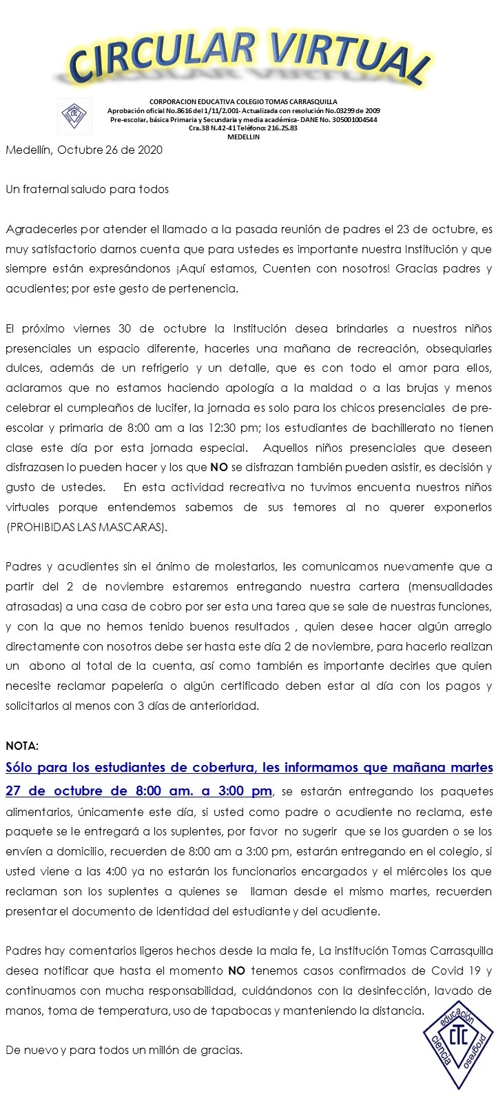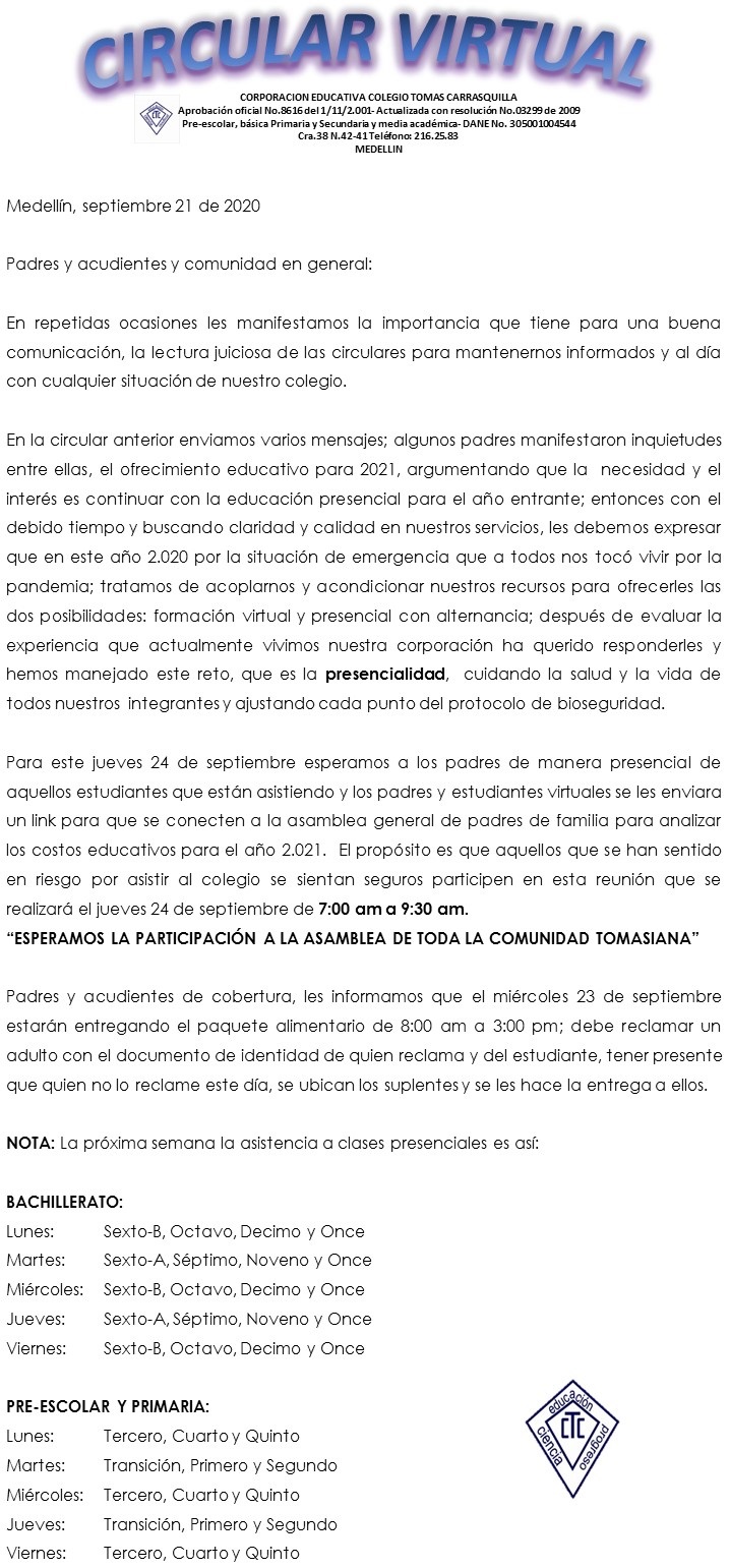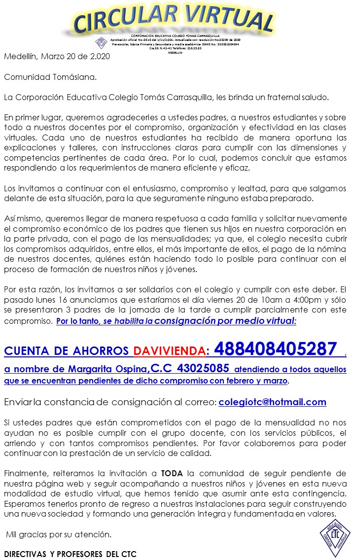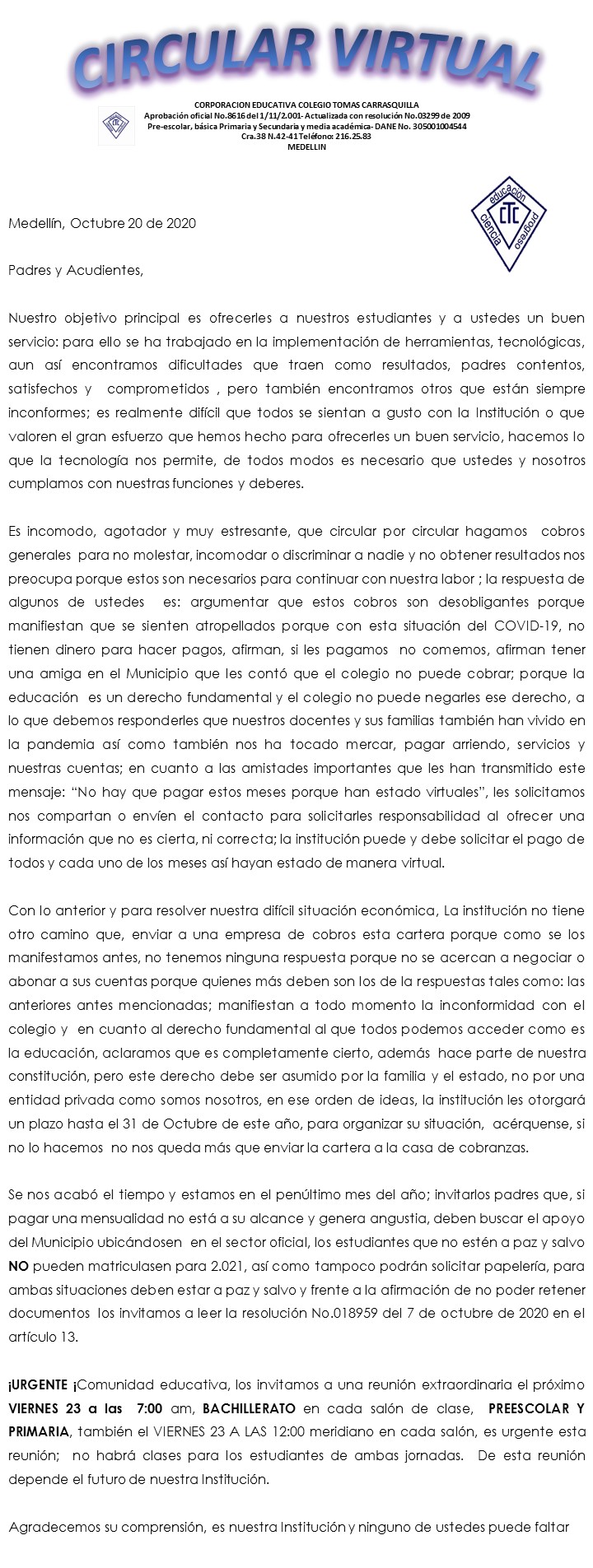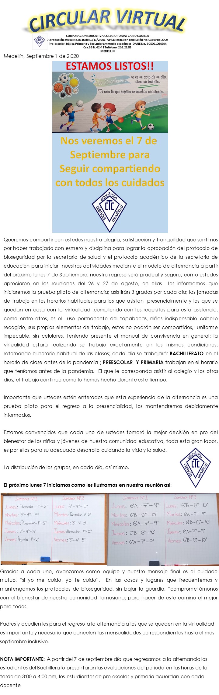 Boletín informativo #3 Colegio Tomás Carrasquilla