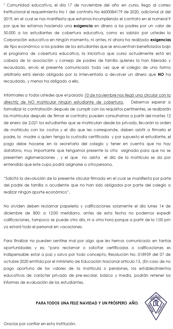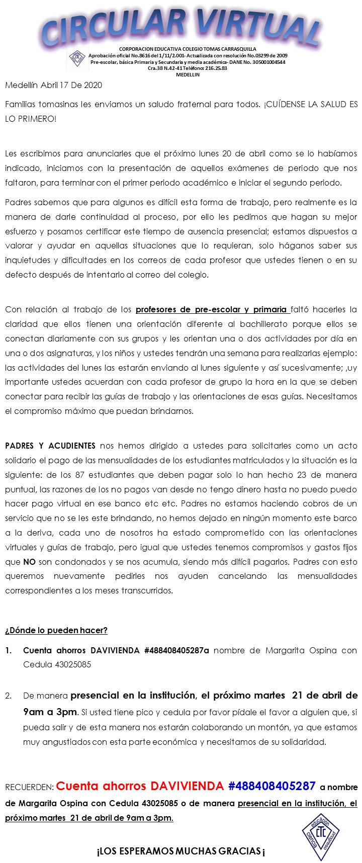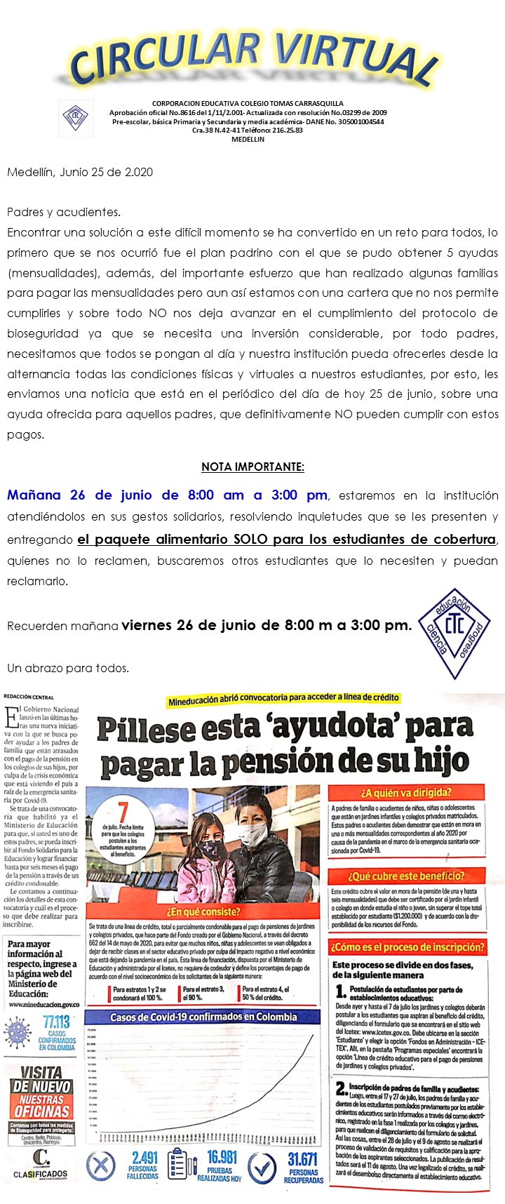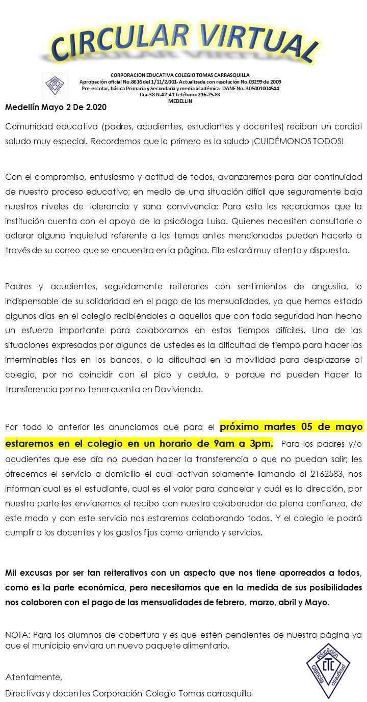 Boletín informativo #2 Colegio Tomás Carrasquilla