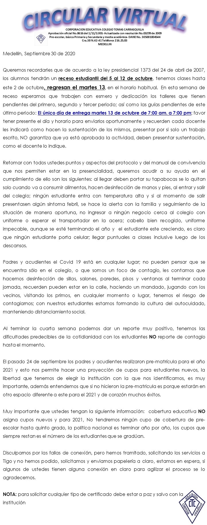 Boletín informativo #4 Colegio Tomás Carrasquilla