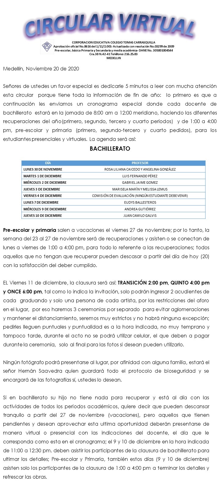 Boletín informativo #11 Colegio Tomás Carrasquilla