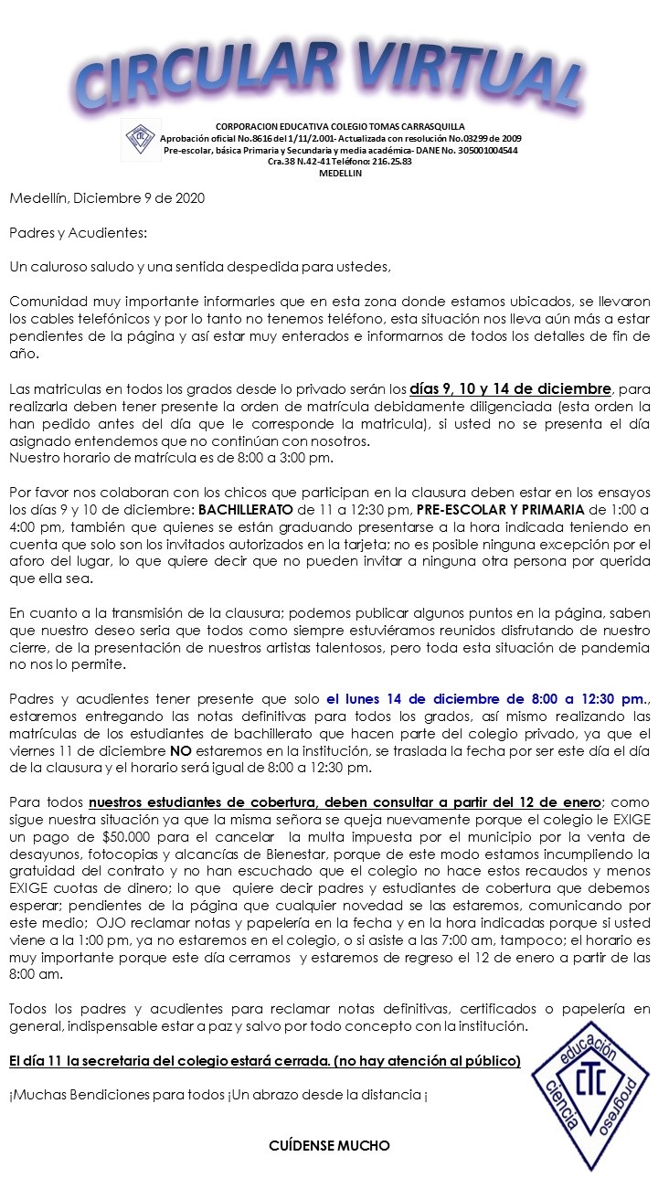 Boletín informativo #9 Colegio Tomás Carrasquilla