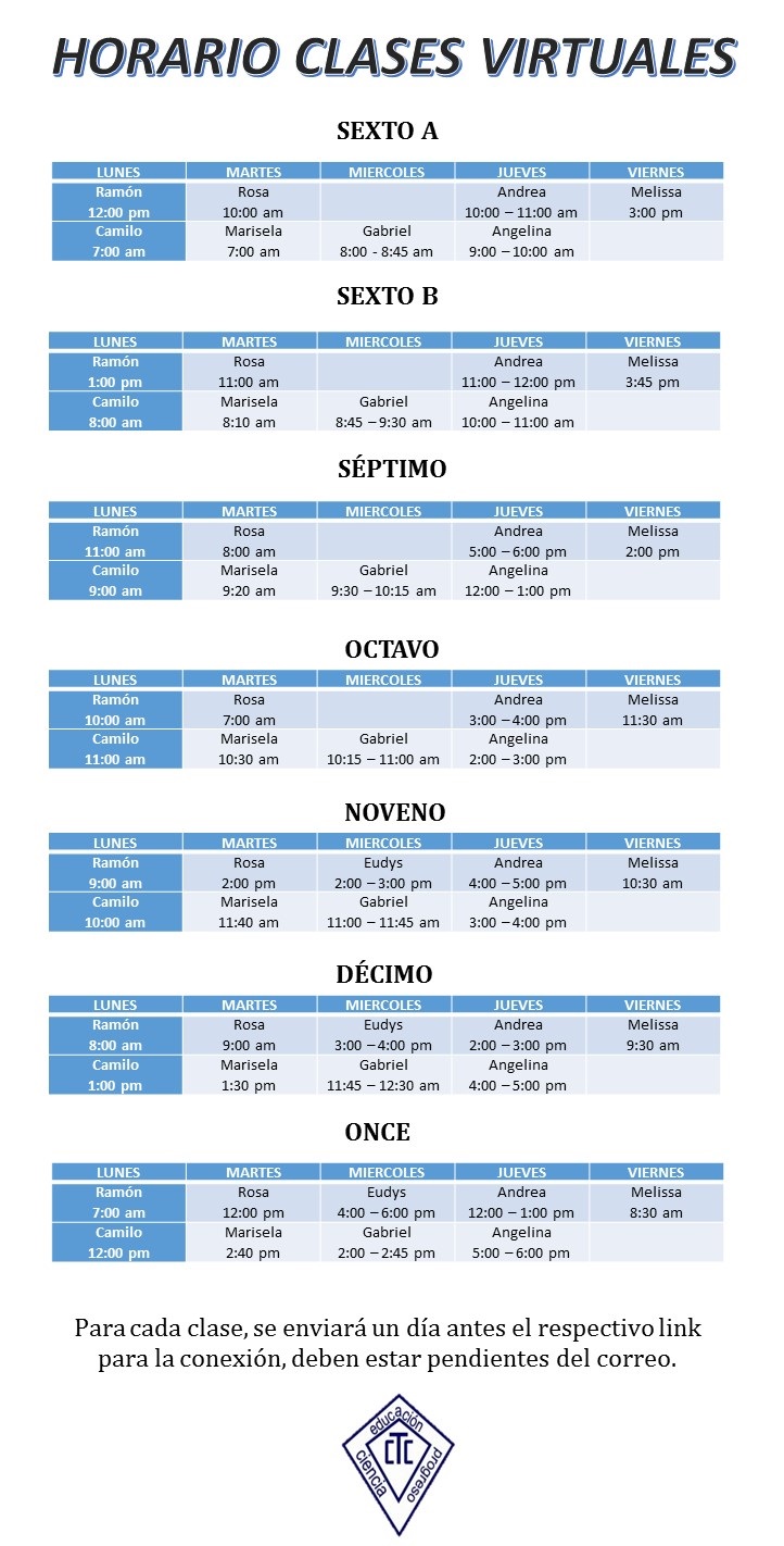 SEXTO A     SEXTO B     SÉPTIMO     OCTAVO   NOVENO     DÉCIMO     ONCE