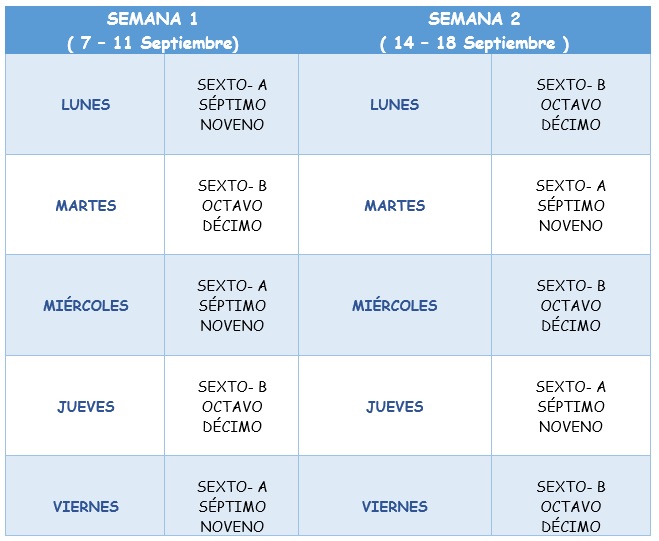 SEXTO A     SEXTO B     SÉPTIMO     OCTAVO   NOVENO     DÉCIMO     ONCE